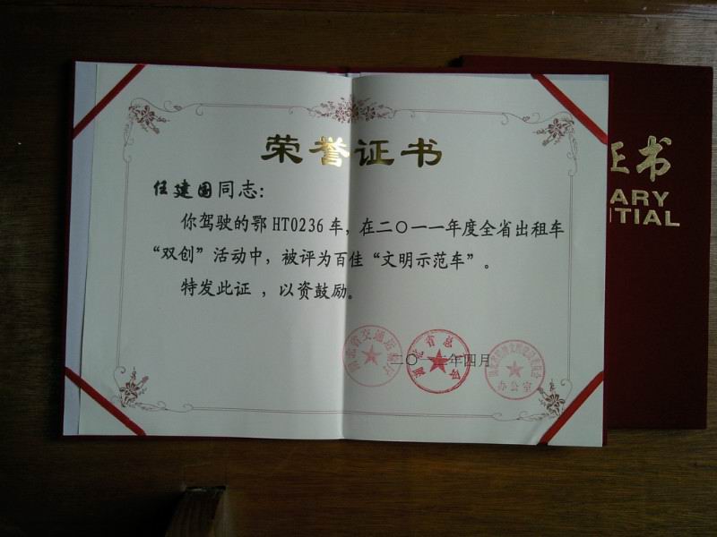 在創(chuàng)建和諧勞動關(guān)系活動中,荊門市公交出租汽車有限公司充分發(fā)揮和調(diào)動廣大駕駛員的勞動熱情和創(chuàng)造活力,獲得了一系列可喜成績。雷鋒車隊隊長曾凡華,2011年獲得省雙創(chuàng)“文明示范車”、荊門市出租行業(yè)“服務(wù)先鋒號”;2012年獲得荊門市“十佳的哥”榮譽稱號;前任隊長王建春獲得省交通廳“優(yōu)秀班組長”榮譽稱號;隊員任建國獲省交通廳“文明示范車”先進個人稱號。2013年6月,公司雷鋒車隊獲“全國工人先鋒號”榮譽。2014年2月28日,公司鄂HT1223雷鋒車駕駛員張華維獲省精神文明建設(shè)委員會辦公室、省交通運輸廳“雷鋒號”榮譽標(biāo)牌。雷鋒車隊先后涌現(xiàn)出一批優(yōu)秀駕駛員,分別獲得了荊門出租汽車行業(yè)“服務(wù)先鋒號”、“十佳的哥的姐”等稱號及“荊門市道德模范提名獎”、“荊門市見義勇為先進集體”。