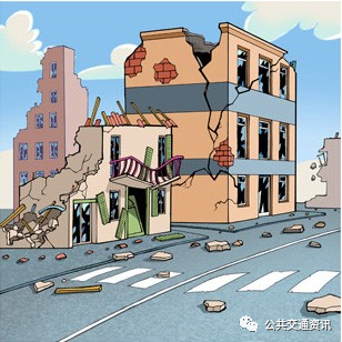 地震是一種危害嚴重的自然災害,會造成建筑物與構(gòu)筑物的破壞,如房屋倒塌、橋梁斷裂、道路嚴重損毀,山區(qū)公路還會出現(xiàn)山體滑坡、塌方等地質(zhì)災害,交通有可能被迫中斷。公交車行駛途中如遇嚴重地震,會因猛烈晃動而失控,發(fā)生碰撞、側(cè)翻、被高空墜物砸到等危險。