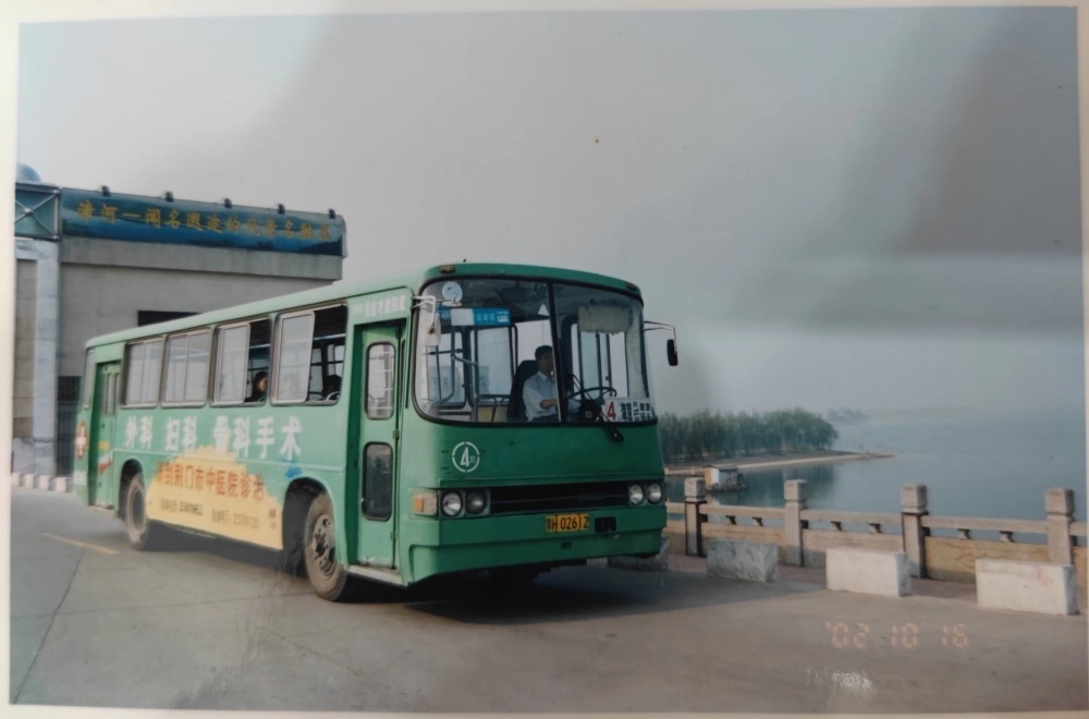 ▲90年代末,荊門市海慧公交停車場(chǎng)。4路車準(zhǔn)備發(fā)車(?;邸暮樱?。