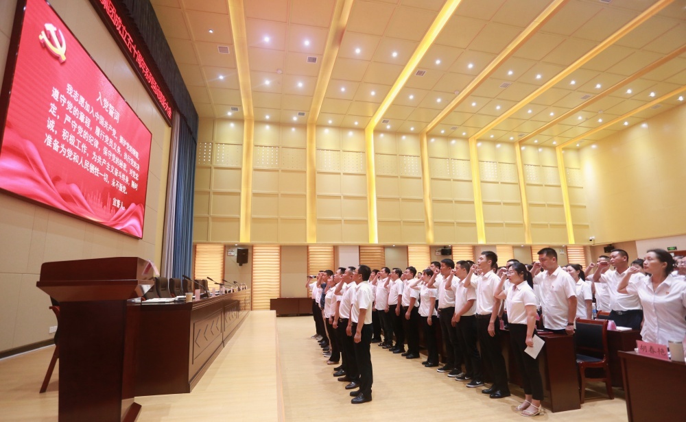 大會在莊嚴的國歌中拉開帷幕,全體黨員宣讀入黨誓詞,老黨員為新發(fā)展黨員佩戴黨徽,新發(fā)展黨員代表上臺發(fā)言。