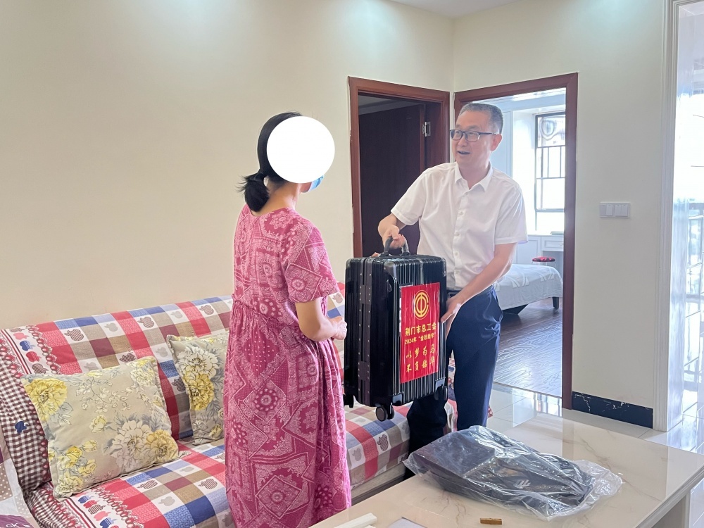 活動中,謝繼先詳細了解了困難職工的工作生活和子女就學情況,鼓勵職工家庭勇敢面對疾病、堅定信心、熱愛生活,隨后送上行李箱、背包、筆記本等助學物資和助學金,希望其子女能夠以夢為馬,不負韶華,在學業(yè)上不斷取得進步。