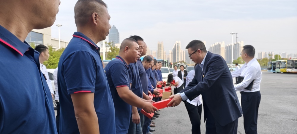 圖/市司法局黨委委員、副局長周永懷同志向公交集團職工贈送了“紅雨傘”