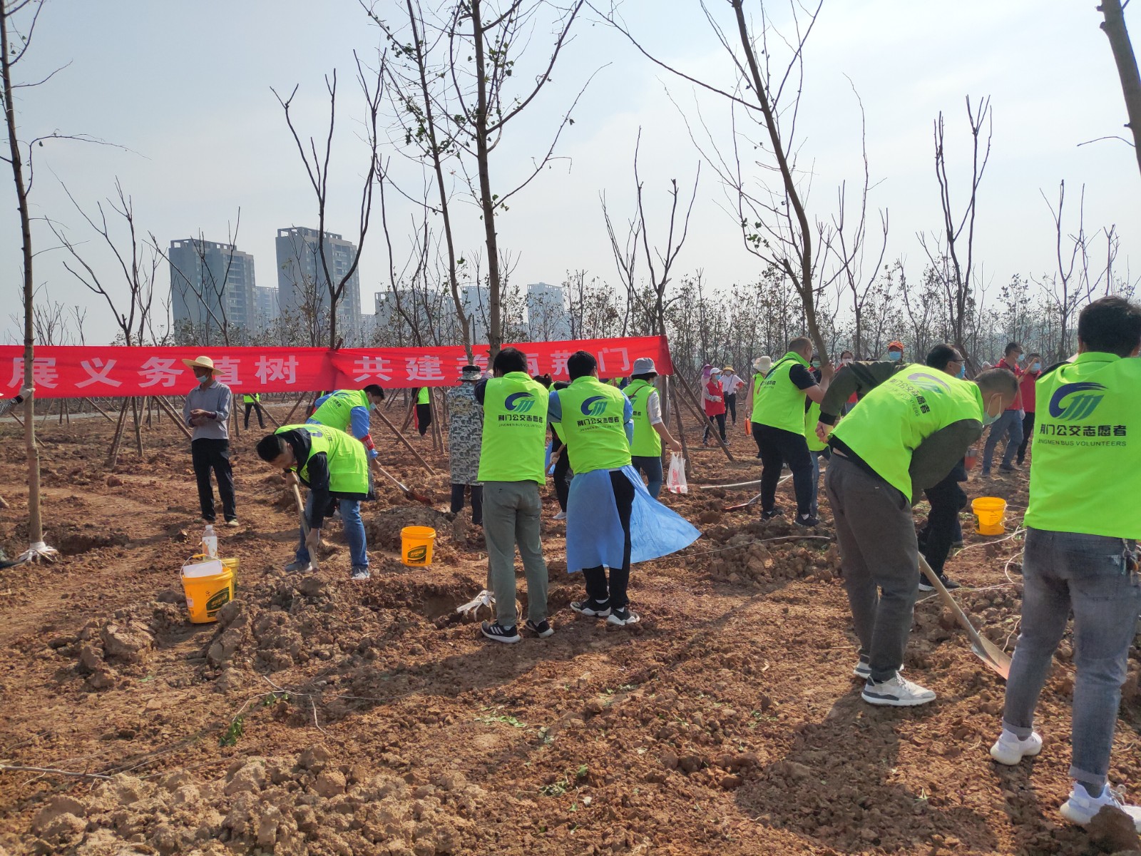 4月29日,荊門晚報第十二屆讀者林植樹活動開展,在漳河大道仙楊路植樹點,上百晚報讀者、志愿者隊伍參加了植樹活動。荊門公交集團14名公交志愿者積極參與活動,并調(diào)派兩輛公交車進行義務(wù)接送..