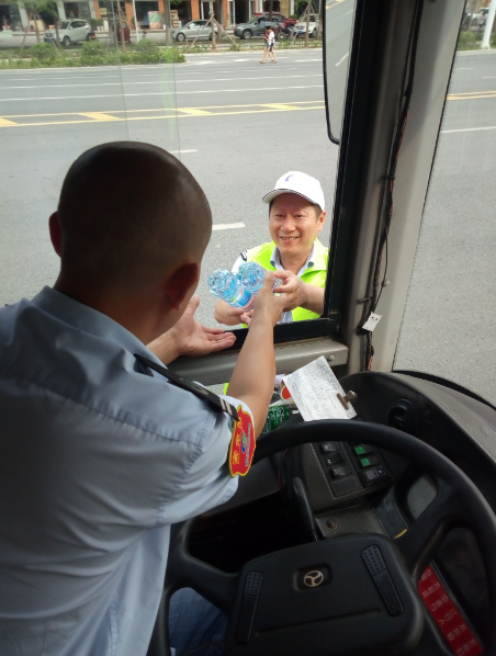 “目前還有小部分線路的公交車是沒有空調(diào)的,就算夏天再熱也得堅(jiān)持,現(xiàn)在天這么熱,一天下來衣服都不知道要濕多少次。今天有他們給我們送來的礦泉水,讓我們司機(jī)在這夏日里體會(huì)到了一絲清涼,真的很感謝他們。有了他們的支持和理解,我們更要做好本職工作?!惫患瘓F(tuán)工作人員說。