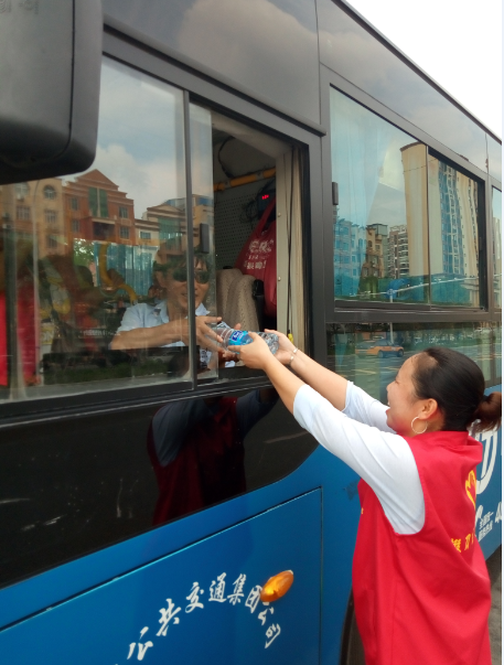 掇刀區(qū)義工聯(lián)協(xié)同公交志愿者為公交司機(jī)送清涼活動(dòng)
