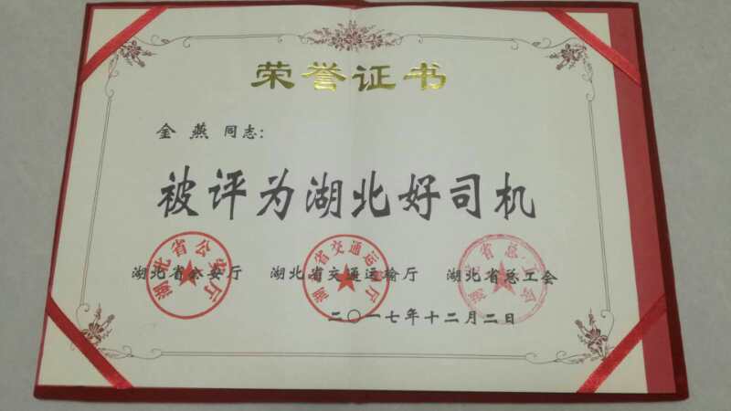 金燕同志榮獲“湖北好司機”稱號的確實至名歸,值得我們所有駕駛員學習。
