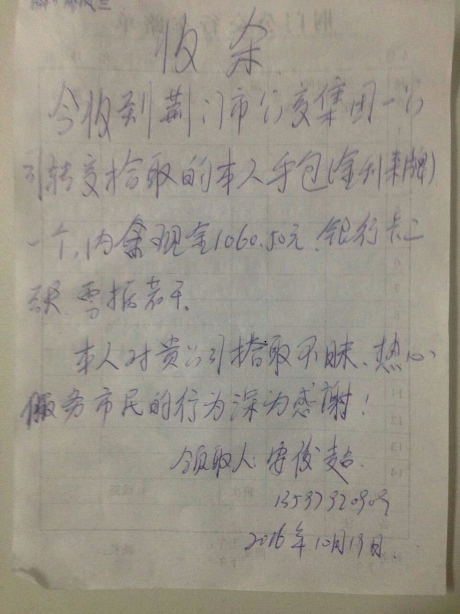 外環(huán)154駕駛員廖鳳蘭車內(nèi)拾到錢包一個(gè),交到公司后,失主聯(lián)系核實(shí)后領(lǐng)走。
