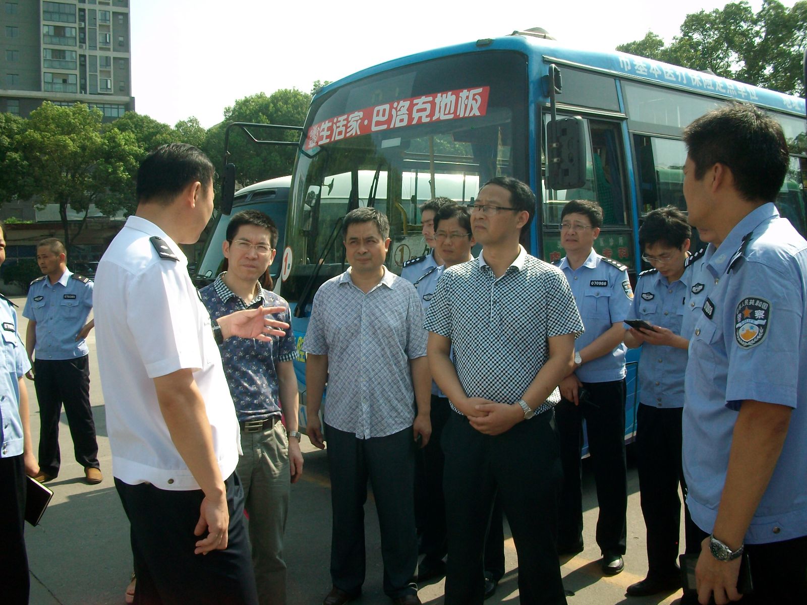 7月21日,副市長(zhǎng)、市公安局局長(zhǎng)朱高文帶領(lǐng)市公安局副局長(zhǎng)王文忠、治安支隊(duì)支隊(duì)長(zhǎng)吳斌鵬、交警支隊(duì)支隊(duì)長(zhǎng)陽(yáng)勇一行深入公交公司、公交站臺(tái),檢查督導(dǎo)集團(tuán)公司公交安全工作。