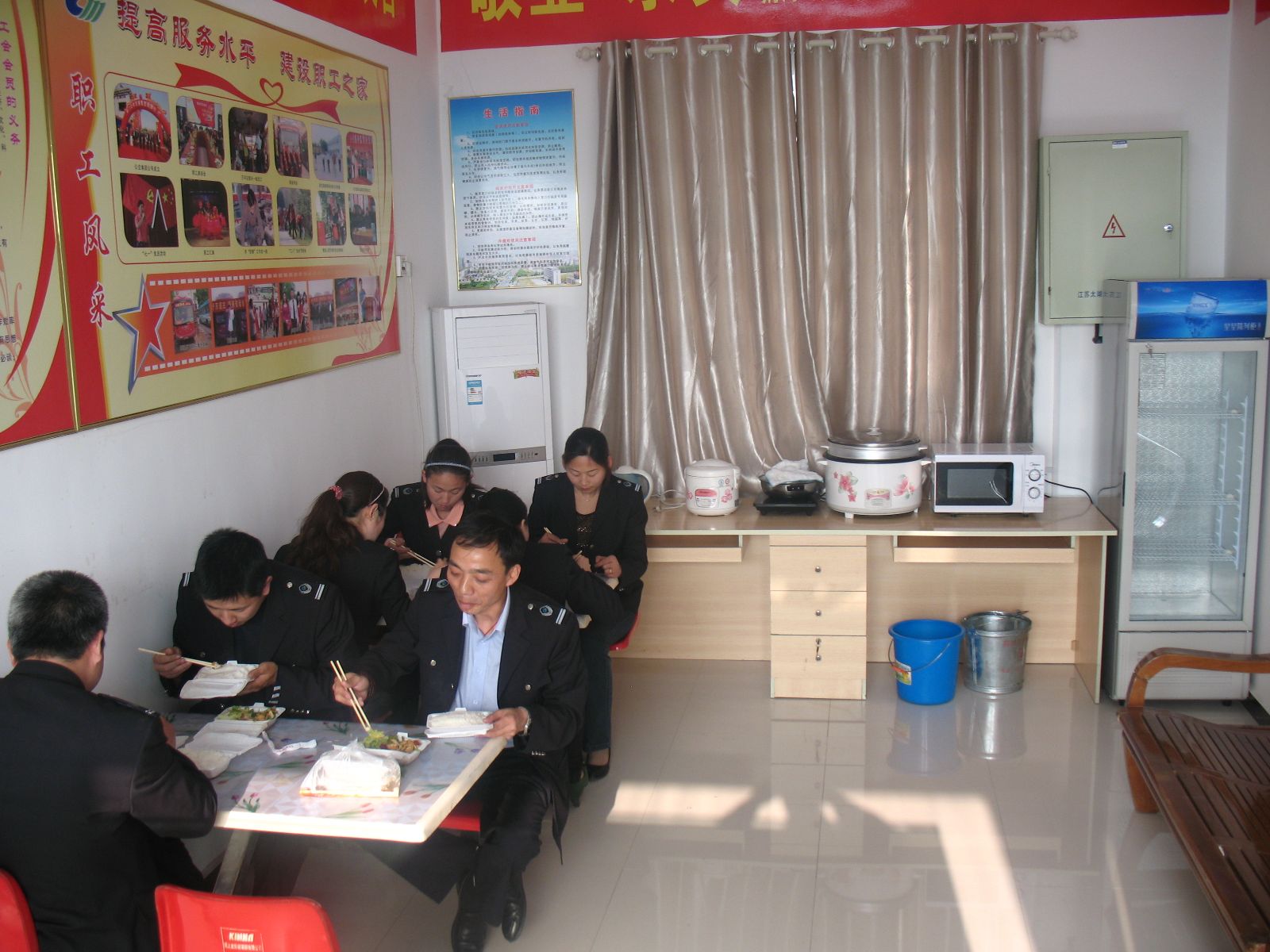 為了給駕駛員創(chuàng)造良好的工作生活環(huán)境,公司出資購買了保鮮柜、微波爐、開水壺、桌椅、空調(diào)等日常生活設(shè)施,使駕駛員能吃上熱飯,喝上熱茶,盡最大努力幫助、呵護一線員工,真正的為他們帶去一絲關(guān)懷和溫暖。為方便市民乘車,公司還要求所有調(diào)度室、站務室免費對乘客開放,為市民提供咨詢服務,解決乘客飲水難、入廁難等便民之需。