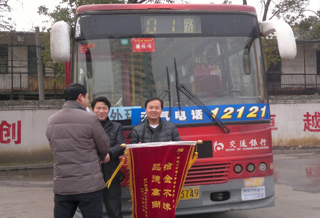 2月15日,荊門(mén)市銀都礦業(yè)有限公司總經(jīng)理鄒詩(shī)發(fā)等一行3人專(zhuān)程來(lái)到市公交一公司,向一公司負(fù)責(zé)人張忠林贈(zèng)送了一面寫(xiě)著“拾金不昧、品質(zhì)高尚”的錦旗,專(zhuān)門(mén)感謝1路駕駛員李想拾到其遺失在公交車(chē)上15萬(wàn)貨款。