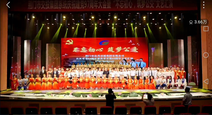 6月26日,市公共交通集團(tuán)有限公司在荊門劇院舉行慶祝建黨97周年表彰大會(huì)暨“不忘初心,筑夢(mèng)公交”文藝演出,來(lái)自11個(gè)基層單位員工獻(xiàn)出了一場(chǎng)炫目多彩的紅色文化視聽(tīng)盛宴。
