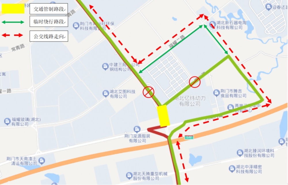 調整線路走向:原荊南大道—楊樹港路—常興路—龍井大道段調整為荊南大道—楊樹港路—福耀二路(東段)—龍井大道