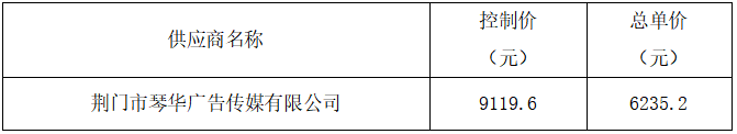 荊門市公共交通集團(tuán)有限公司2024年廣告開展設(shè)計(jì)制作類年度供應(yīng)商采購項(xiàng)目進(jìn)行了詢價(jià),經(jīng)詢價(jià)小組評(píng)審?fù)扑],現(xiàn)將本次詢價(jià)的成交結(jié)果公布如下: